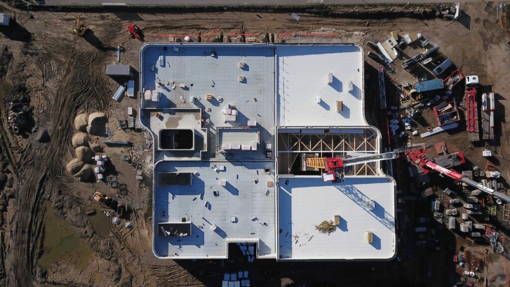 Après plusieurs mois de travaux, le projet entre désormais dans une nouvelle dynamique, avec une vision concrète des volumes et de l’architecture finale du bâtiment.